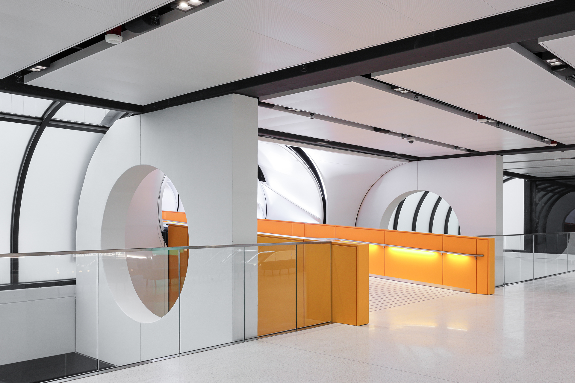 Clad in architectural-grade translucent membrane sealed with PTFE and coated on both sides in FEP, the petals offer durability, consistent color transparency, and minimal maintenance. Integrated lighting with colour changing capabilities transforms the canopy into a luminous gradient, while speakers and mechanical systems are seamlessly embedded within the tunnel envelope, ensuring comfort, acoustics, and technical performance without disrupting visual purity.